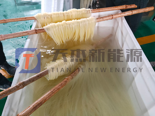 2、高溫階段:米粉進(jìn)入高溫階段后,內(nèi)部的水份就被逐步地蒸發(fā)出來(lái)并排出米粉外,米粉干燥均勻,成型好,進(jìn)入冷卻區(qū)的米粉的水份基本保持在13%左右,米粉烘干房的溫度控制在38℃-42℃之間,注意避免水份過(guò)份烤干而出現(xiàn)的爆斷情況。